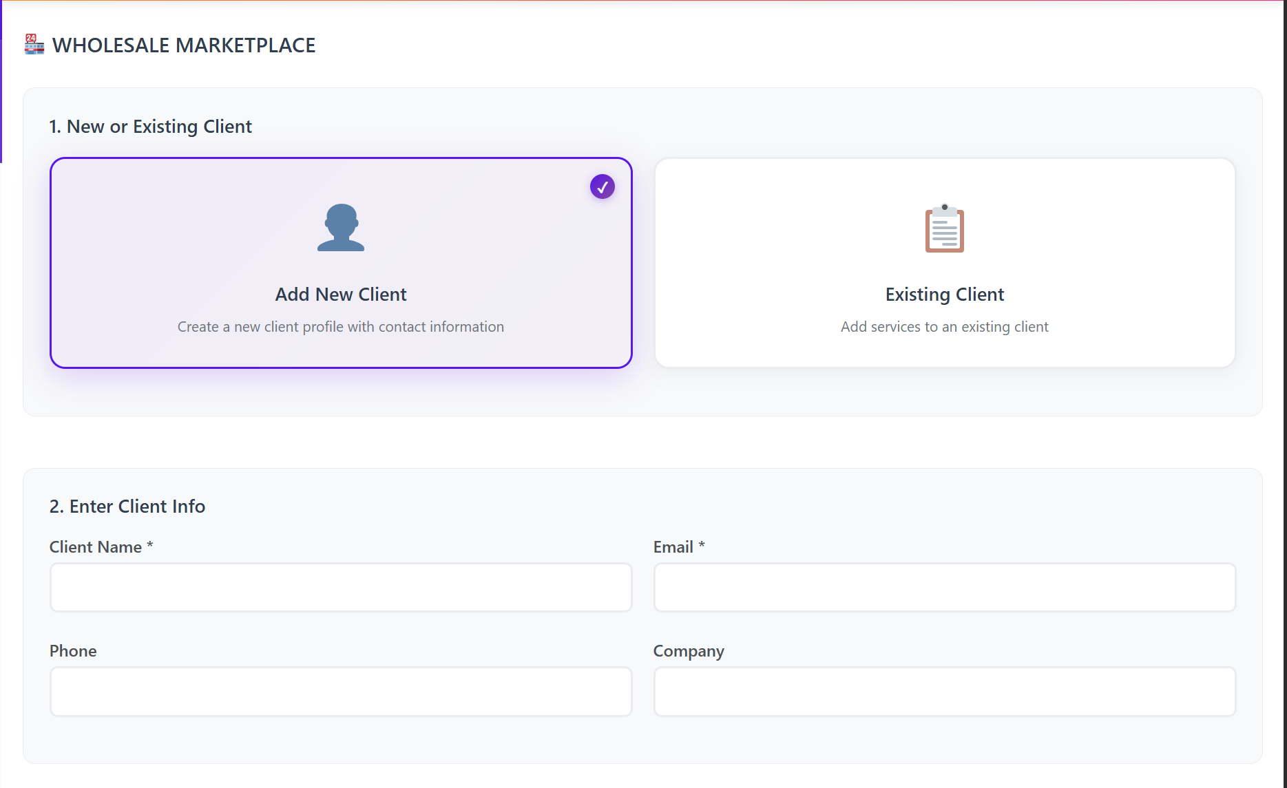 2. Select the Client you wish to activate the service for (or click "Add New Client").image.png