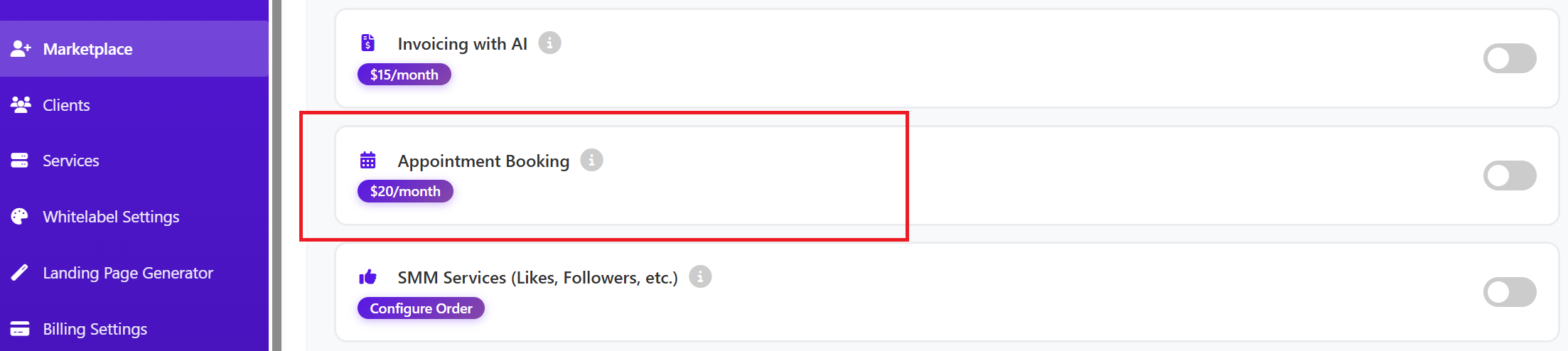 The Appointment Booking service allows you to provide your clients with a fully branded, professional scheduling system. This guide will walk you through the steps to activate this service for your clients within the Resell Portal.
