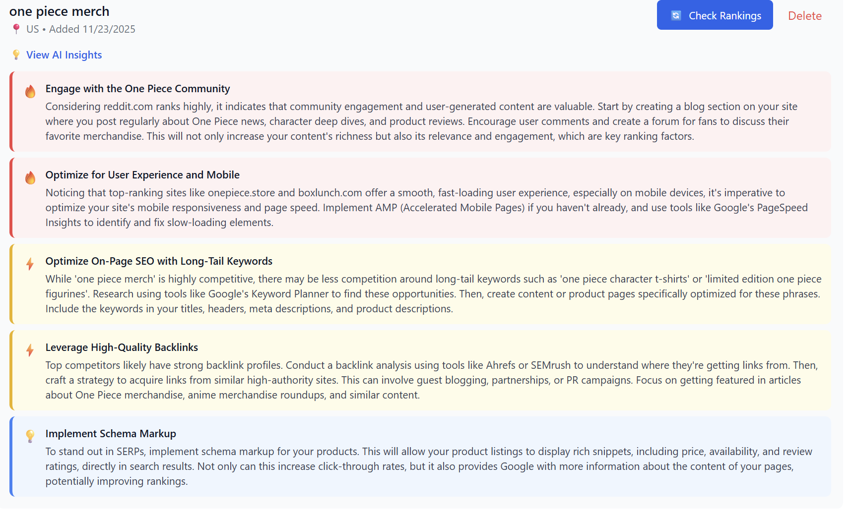 Let the AI insights guide your blog posts, product pages, or category improvements