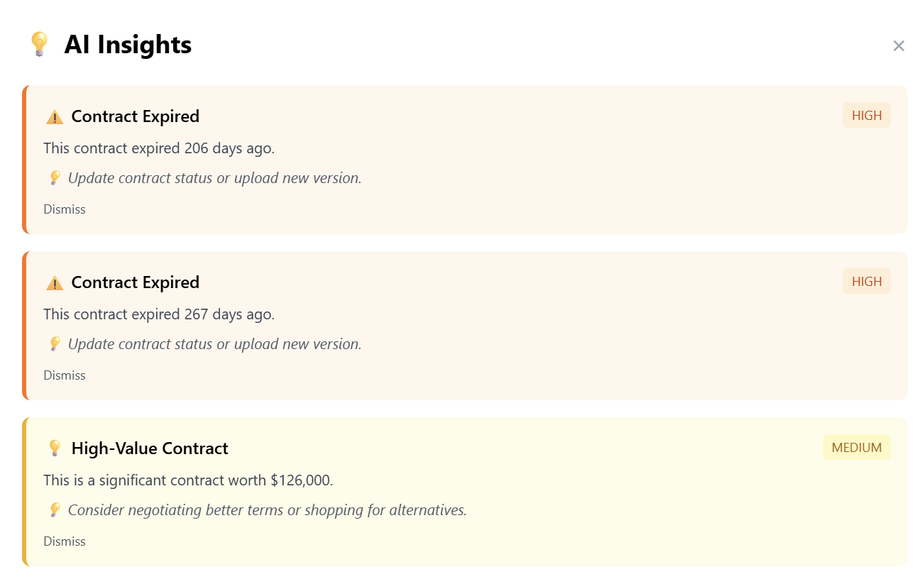 • Weekly Summary: Receive a weekly digest (e.g., every Monday) that summarizes all expiring contracts and AI insights for the week ahead.