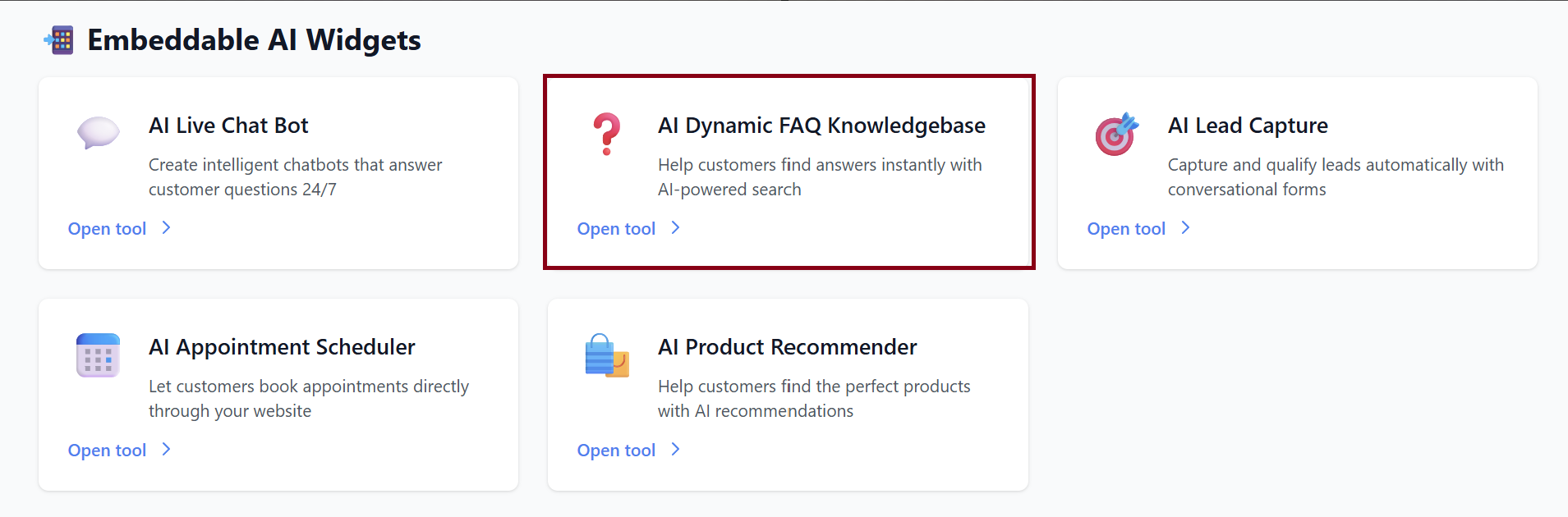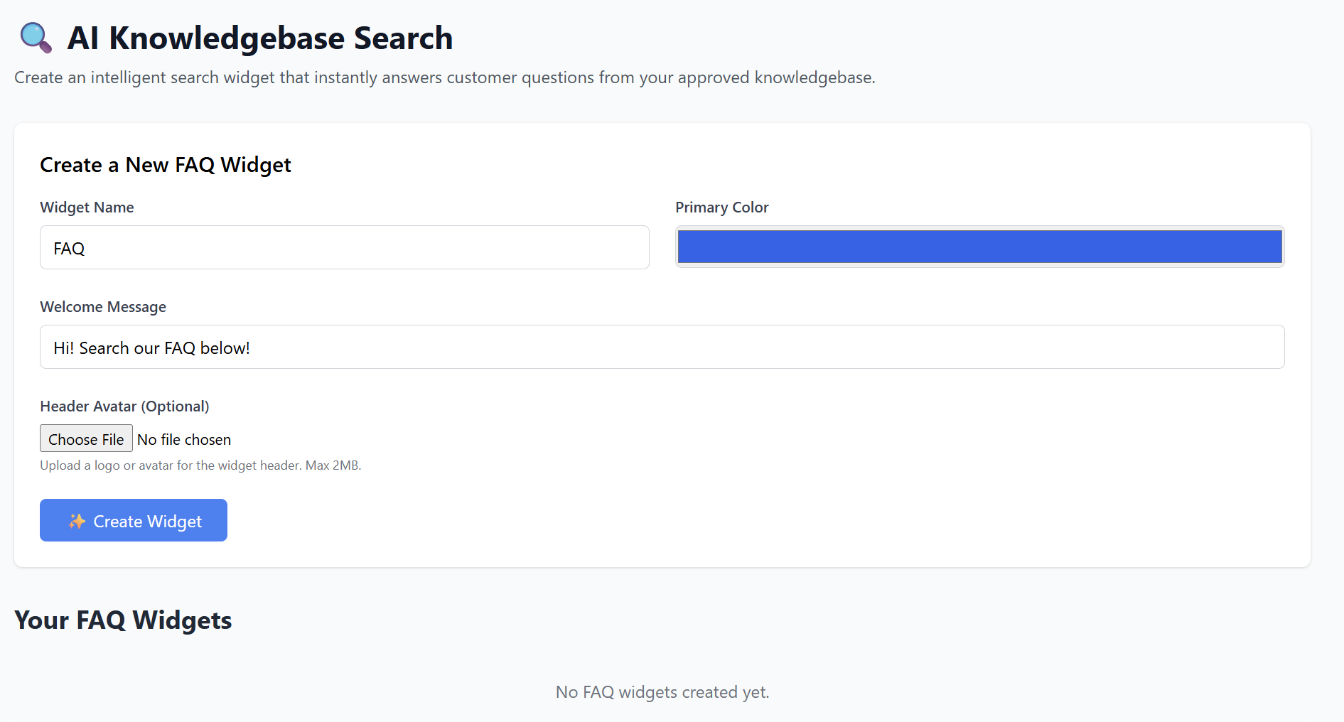 | Create Widget | Build an AI-powered FAQ search tool. |