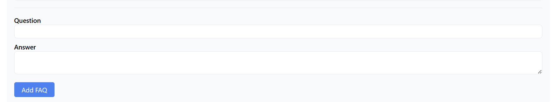 Each FAQ will appear below with an × (delete) option to remove individual entries.