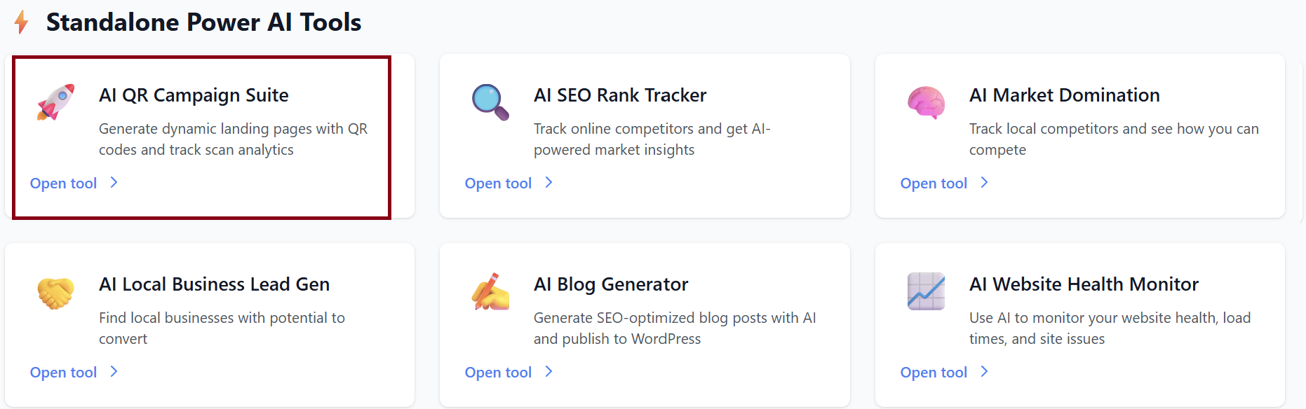 After activation, go to Services → AI QR Campaign Suite to begin creating campaigns.