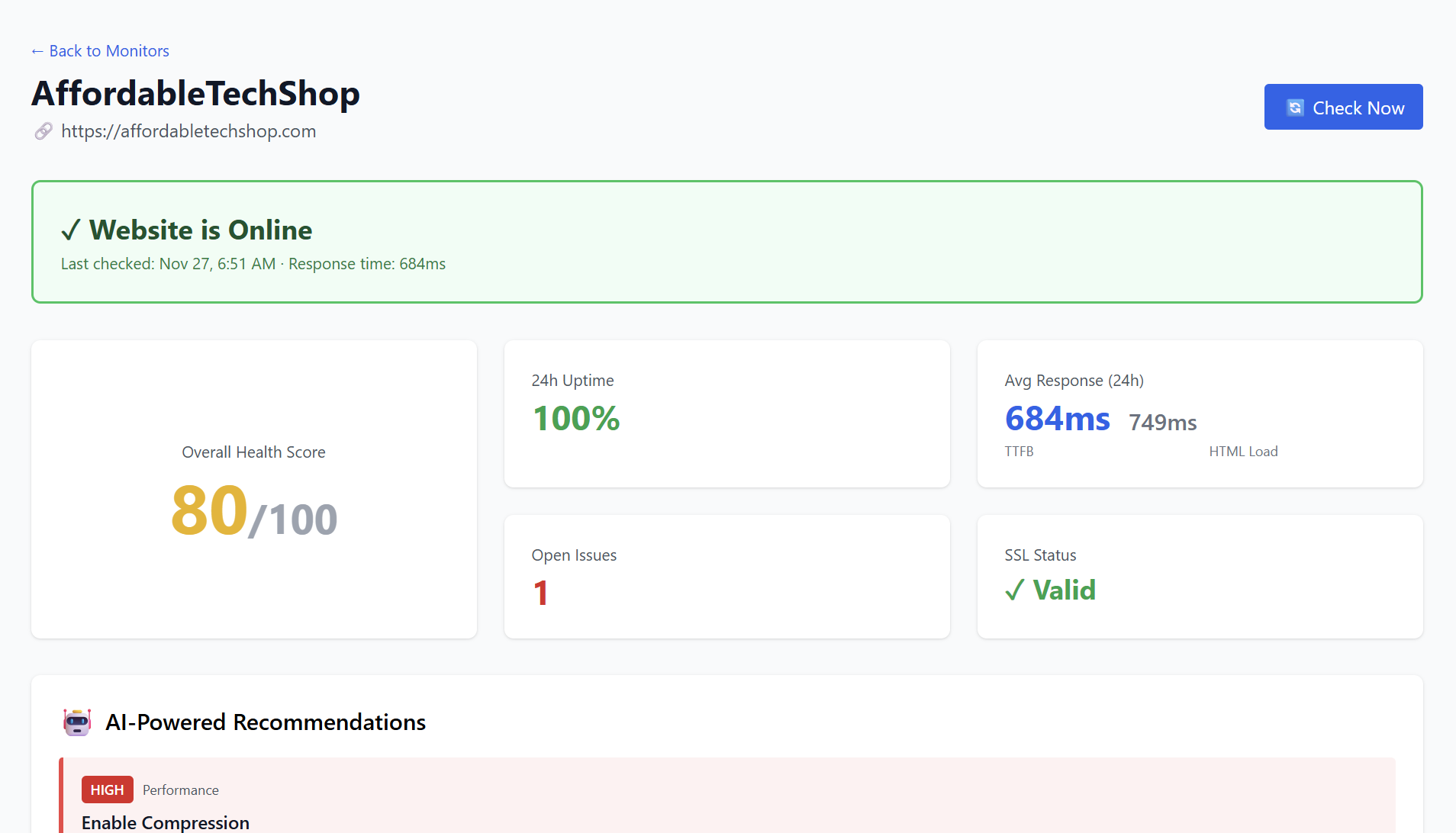 AI Website Health Monitor