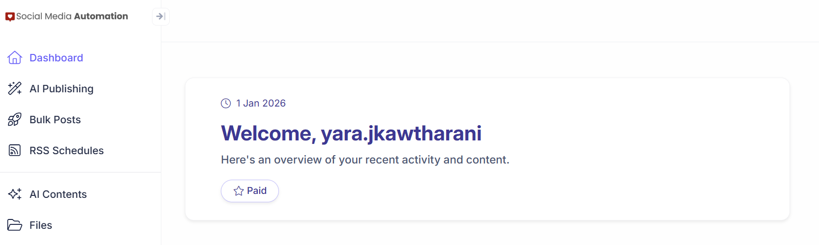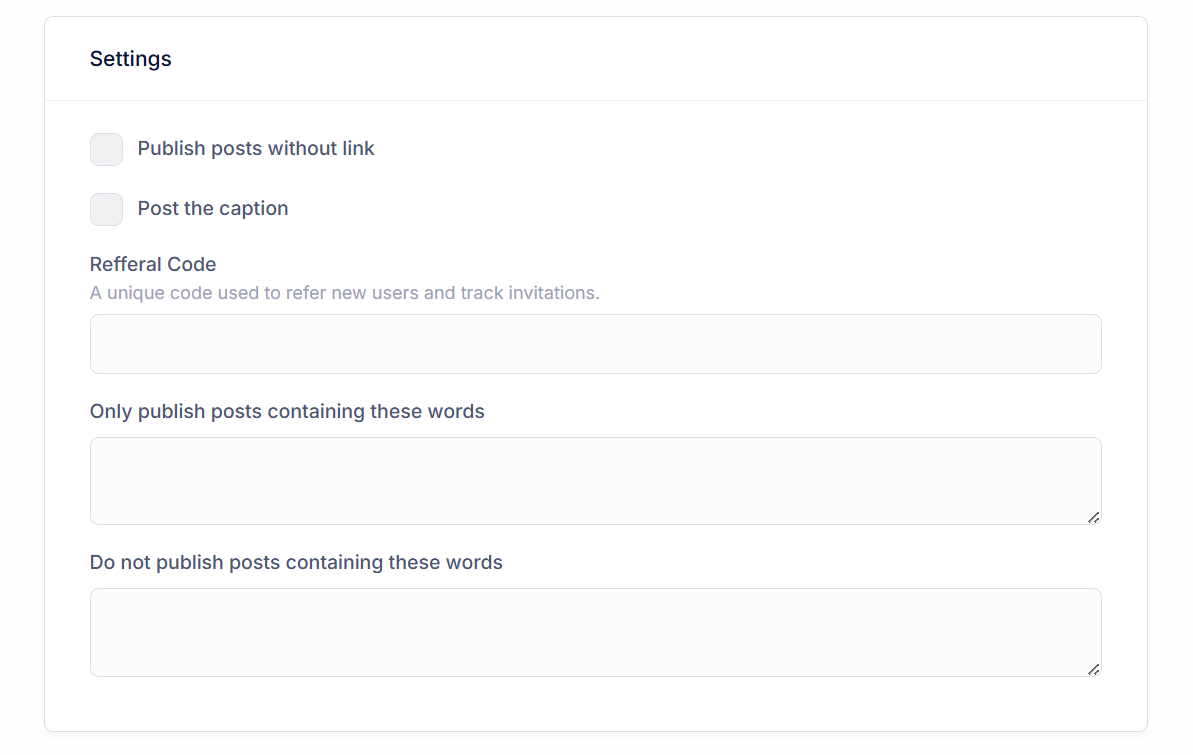 RSS Schedules: Automate posting from a blog or news site. Users simply enter an RSS URL, customize link settings (or referral codes), and set a schedule to pull content automatically.