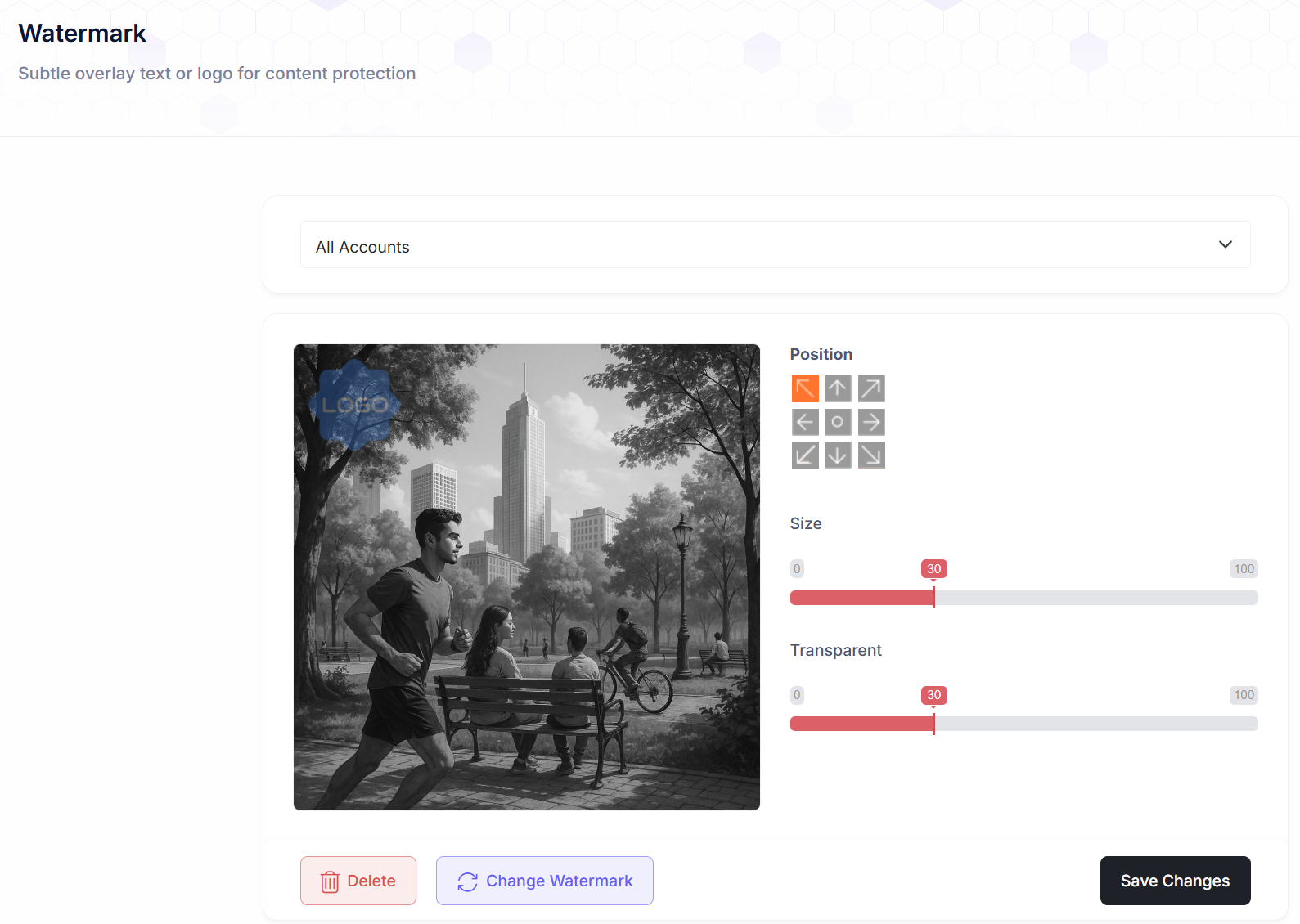 Watermark: Protect brand identity by automatically overlaying a subtle logo or text on all image content.